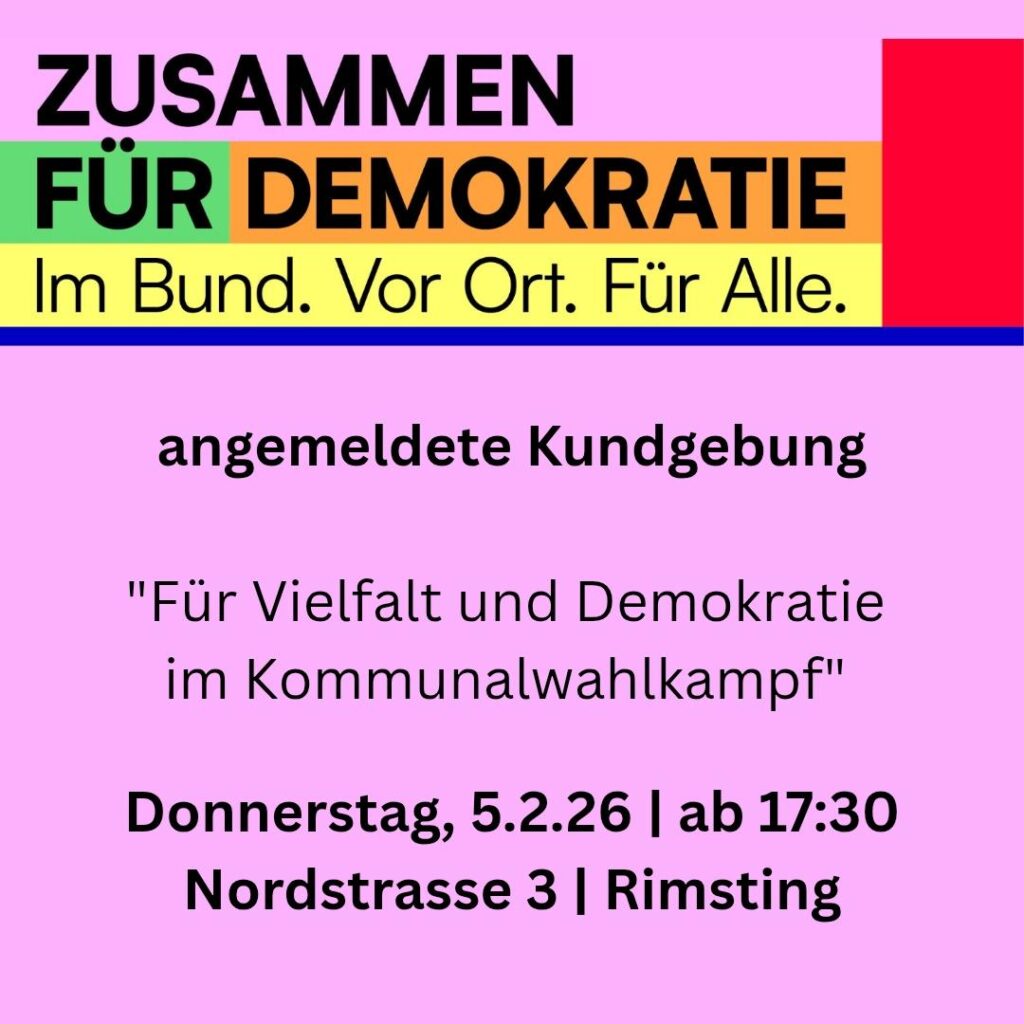 Die AfD hat in Weilheim ein Kino gemietet und will dort einen Veranstaltungsraum einrichten. Wir unterstützen den Protest gegen die Raumnahme der extrem rechten Partei und rufen zur Demonstration „für Demokratie und Menschenwürde“ des Bündnisses „Wir in Weilheim“ auf. Hier der Aufruf: