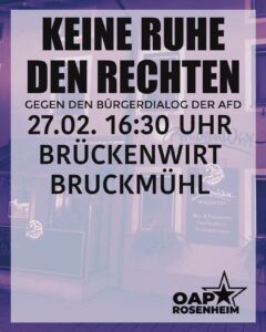 In Bruckmühl tritt die AfD auf und mit ihr ein Programm, das auf Ausgrenzung, Spaltung und autoritärem Denken basiert. Was hier als Wahlkampf inszeniert wird, ist in Wahrheit der Versuch, menschenverachtende Positionen gesellschaftsfähig zu machen.